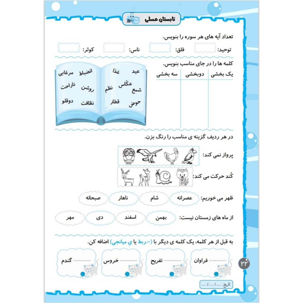 کتاب تابستان عسلی شامل تمرینهای خلاقانه و جذاب برای مرور دروس فارسی ریاضی و علوم